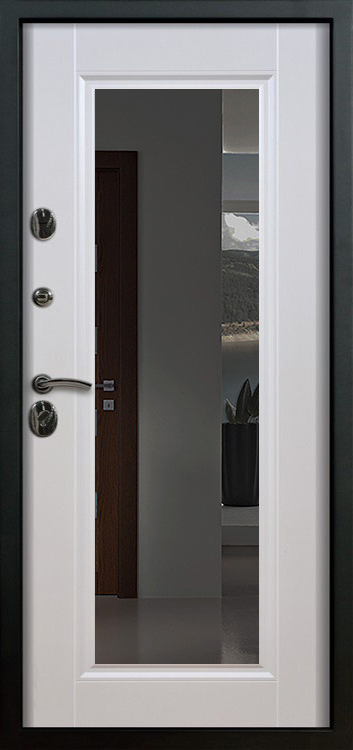 Металлическая входная дверь с зеркалом внутри №1 создана как универсальное решение для дома, квартиры или офиса, где важны и безопасность, и комфорт. Каркас выполнен из прочной профильной трубы с металлическим листом толщиной 2 мм и рёбрами жёсткости, что обеспечивает устойчивость к механическим воздействиям и долгий срок службы. Снаружи дверь покрыта порошковой окраской, стойкой к атмосферным влияниям и царапинам, а изнутри отделана МДФ с ПВХ-покрытием, которое сохраняет свежий вид даже при интенсивной эксплуатации. Встроенное зеркало превращает полотно в практичный элемент интерьера: оно визуально расширяет пространство прихожей и избавляет от лишних предметов мебели. Два контура уплотнителей защищают от пыли и сквозняков, а блокираторы усиливают общую надёжность конструкции. Модель не оснащена терморазрывом, зато отличается продуманным балансом практичности и доступной цены, оставаясь удобным вариантом для повседневного использования. Металлическая входная дверь с зеркалом внутри №1 от производителя: быстрое изготовление и монтаж в Бронницах, индивидуальные размеры, широкий выбор материалов и фурнитуры, официальная гарантия до 10 лет.