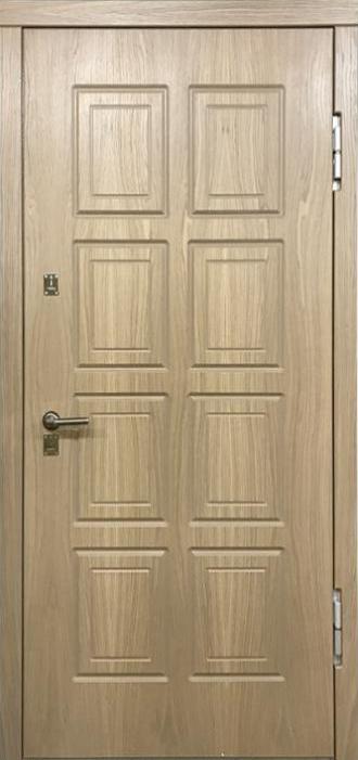 Дверь входная в частный дом №44 сочетает в себе надёжность стальной основы и практичность декоративной отделки. Каркас и полотно из профильной трубы с листом металла толщиной 2 мм обеспечивают устойчивость к нагрузкам, а рёбра жёсткости повышают общую прочность конструкции. В коробке и полотне предусмотрен терморазрыв, который предотвращает промерзание и помогает сохранять тепло внутри помещения, что особенно важно для частных домов и коттеджей. Снаружи и внутри дверь облицована МДФ-накладками, материалом, устойчивым к мелким повреждениям и удобным в уходе, благодаря чему изделие долго сохраняет презентабельный вид. Двойной контур уплотнителей блокирует сквозняки и влагу, создавая дополнительный комфорт. Для безопасности установлены два замка — сувальдный Просам и цилиндровый Мосрентген, оба с трёхригельной системой. Модель легко адаптируется под пожелания заказчика: можно изменить отделку или добавить декоративные элементы, превращая дверь в индивидуальное решение для дома, офиса или квартиры. Дверь входная в частный дом №44 от производителя: быстрое изготовление и монтаж в Бронницах, индивидуальные размеры, широкий выбор материалов и фурнитуры, официальная гарантия до 10 лет.