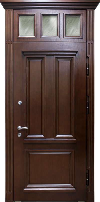 Дверь с сувальдным замком и фрамугой №34 идеально сочетает в себе стиль и надежность. Панель из натурального дерева, использованная как для внешней, так и для внутренней отделки, придает двери благородный и элегантный вид, делая её отличным выбором для помещений с классическим или современным интерьером. Каркас двери выполнен из профильной трубы 50х25 мм и усилен ребрами жесткости, что гарантирует прочность конструкции. Замки от производителей "Просам" и "Мосрентген" с тремя ригелями обеспечивают высокий уровень безопасности. Дверь оснащена уплотнителями с двумя контурами, что гарантирует отличную герметичность, а возможность замены замков и добавления кованых элементов делает её адаптируемой под любые требования. Кроме того, дверь можно дополнить зеркалом, стеклопакетом или видеодомофоном для еще большего комфорта. Входная дверь с сувальдным замком и фрамугой №34 от производителя: быстрое изготовление и монтаж в Бронницах, индивидуальные размеры, широкий выбор материалов и фурнитуры, официальная гарантия до 10 лет.