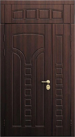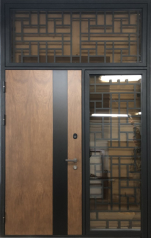 Входная дверь с остекленной фрамугой №1 привлекает внимание благодаря стильному и современному дизайну. Ее внешняя и внутренняя отделка из МДФ выглядит элегантно и долговечно, а также устойчива к механическим повреждениям, таким как царапины и вмятины. Каркас из профильной трубы и металл толщиной 2 мм гарантируют прочность и надежность. Наличие фрамуги позволяет создать эффектное освещение и визуально расширяет пространство, при этом сохранение теплоизоляции обеспечено двумя контурами резинового уплотнителя. Блокираторы и качественные замки, такие как Просам и Мосрентген, надежно защищают от взлома. Возможность дополнить дверь стеклопакетом, зеркалом или коваными элементами делает эту модель еще более универсальной для различных интерьеров. Входная дверь с остекленной фрамугой №1 от производителя: быстрое изготовление и монтаж в Бронницах, индивидуальные размеры, широкий выбор материалов и фурнитуры, официальная гарантия до 10 лет.