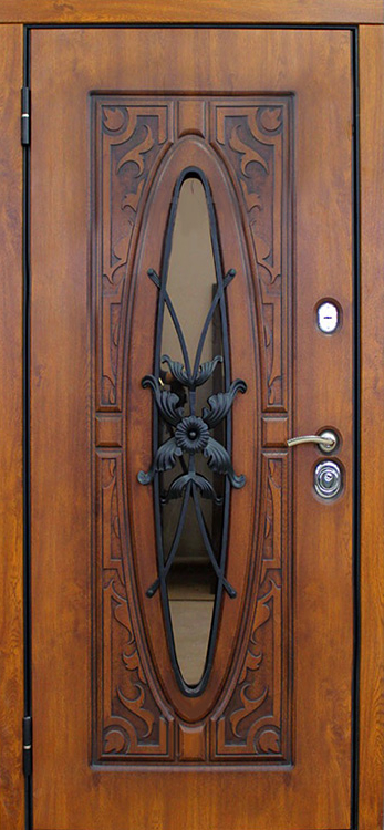 В частном доме дверь должна быть не просто барьером, а настоящей визитной карточкой, и именно эту задачу решает входная дверь со стеклом и ковкой №23. Натуральное дерево в отделке придает ей благородный и теплый вид, а декоративная ковка превращает конструкцию в выразительный элемент архитектуры. Внутри скрыт стальной каркас с листом металла 1,5 мм и противосъёмными блокираторами, что обеспечивает прочность и устойчивость к взлому. Особого внимания заслуживает наличие терморазрыва как в коробке, так и в полотне: он защищает от промерзания, исключает появление конденсата и помогает сохранять тепло зимой и прохладу летом. Тройной контур магнитного уплотнения усиливает герметичность и снижает уровень уличного шума, а пенопласт повышенной плотности в качестве наполнителя добавляет теплоизоляции. Входная дверь в частный дом со стеклом и ковкой №23 гармонично сочетает надежность и эстетику, позволяя владельцу адаптировать её под стиль фасада с помощью дополнительных декоративных решений. Входная дверь в частный дом со стеклом и ковкой №23 от производителя: быстрое изготовление и монтаж в Бронницах, индивидуальные размеры, широкий выбор материалов и фурнитуры, официальная гарантия до 10 лет.