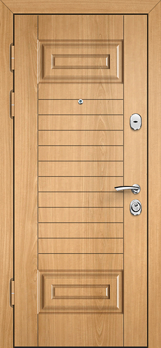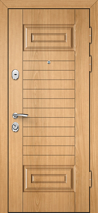 Металлическая конструкция с листом стали толщиной 2 мм и жёстким каркасом из профильной трубы формирует основу, которая не подведёт ни в квартире, ни в офисе. Два контура резинового уплотнителя делают закрывание плотным, уменьшая шум и сквозняки, а наличие блокираторов повышает уровень безопасности. Внешняя и внутренняя отделка выполнена из МДФ ПВХ — материал прочный, устойчивый к мелким повреждениям и сохраняющий аккуратный вид при ежедневной эксплуатации. В центре внимания здесь Железная дверь в квартиру №78, сочетающая надёжность стали и декоративные возможности панелей, которые можно комбинировать по вкусу. Комплект замков представлен сувальдным Просам и цилиндровым Мосрентген, при этом доступна замена на более сложные механизмы вплоть до биометрических систем. Конструкцию легко дополнить зеркалом, стеклопакетом, коваными элементами или видеодомофоном, превратив строгую дверь в удобный и технологичный элемент современного жилья. Железная дверь в квартиру №78 от производителя: быстрое изготовление и монтаж в Бронницах, индивидуальные размеры, широкий выбор материалов и фурнитуры, официальная гарантия до 10 лет.