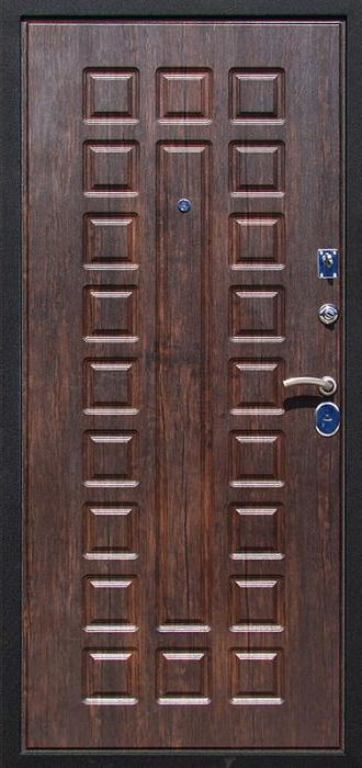 Входная дверь в квартиру ширина стандарт №41 создана как универсальное решение для городских квартир, частных домов и офисных помещений. Конструкция на основе профильной трубы и листа стали толщиной 2 мм обеспечивает прочность и устойчивость к взлому, а рёбра жёсткости добавляют дополнительную надёжность. С обеих сторон дверь облицована плитами МДФ, которые придают поверхности аккуратный внешний вид и защищают её от мелких повреждений. Такой вариант отделки отличается практичностью: панели устойчивы к влаге, сохраняют форму и цвет, даже если дверь эксплуатируется ежедневно. Два контура резиновых уплотнителей не дают проникнуть сквознякам и уличному шуму, а терморазрыв в коробке и полотне препятствует промерзанию в холодное время года. Благодаря стандартной ширине установка не требует сложных подготовительных работ, а при необходимости дверь может быть изготовлена в индивидуальном размере. Входная дверь в квартиру ширина стандарт №41 от производителя: быстрое изготовление и монтаж в Бронницах, индивидуальные размеры, широкий выбор материалов и фурнитуры, официальная гарантия до 10 лет.