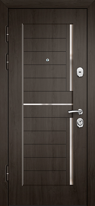 Эстетика и надежность в одном решении — так можно описать современную входную дверь в квартиру №80. Она выполнена на прочном стальном каркасе с листом металла толщиной 2 мм и ребрами жесткости, что обеспечивает устойчивость к взлому и долговечность конструкции. С обеих сторон дверь облицована панелями МДФ ПВХ, которые ценятся за стойкость к механическим повреждениям и стабильный внешний вид даже при интенсивной эксплуатации. Двойной контур уплотнителей снижает проникновение шума и запахов, а при необходимости можно дополнить конструкцию тепло- и шумоизоляцией. Несмотря на лаконичный дизайн, дверь легко подстраивается под разные интерьеры, будь то квартира, частный дом или офисное помещение, сохраняя строгий и в то же время актуальный облик. Современная входная дверь в квартиру №80 от производителя: быстрое изготовление и монтаж в Бронницах, индивидуальные размеры, широкий выбор материалов и фурнитуры, официальная гарантия до 10 лет.