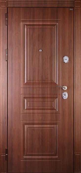 Дверь уличная с терморазрывом в частный дом №44 – отличное решение для коттеджей и частных домов, где важны не только безопасность, но и теплоизоляция. Технология терморазрыва в коробке и полотне эффективно удерживает тепло внутри и предотвращает образование конденсата. Внешняя и внутренняя отделка из панелей МДФ с ПВХ покрытием придают двери современный вид и обеспечивают устойчивость к внешним воздействиям, таким как механические повреждения и изменения температуры. Конструкция из металла толщиной 1,5 мм с усилением профильными трубами 40x25 мм делает дверь прочной и надежной. Шумоизоляция из пенопласта повышенной плотности дополнительно защищает от внешнего шума. Замки Kale Kilit с тремя ригелями обеспечат высокую степень безопасности вашего дома. Дверь уличная с терморазрывом в частный дом №44 от производителя: быстрое изготовление и монтаж в Бронницах, индивидуальные размеры, широкий выбор материалов и фурнитуры, официальная гарантия до 10 лет.