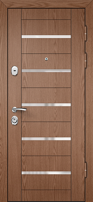 Входная дверь с зеркальным полотном №53 выделяется тем, что зеркало занимает почти всю внутреннюю поверхность, превращая дверь не просто в защитный элемент, а в полноценную часть интерьера. Такое решение особенно удобно для квартир и офисов, где зеркало необходимо ежедневно, а отдельное место для него найти непросто. Каркас изготовлен из профильной трубы и усилен рёбрами жёсткости, стальной лист толщиной 2 мм обеспечивает прочность и устойчивость к нагрузкам. В отделке использованы панели МДФ с ПВХ-покрытием, которые стойко переносят повседневные испытания и сохраняют внешний вид долгие годы. Два контура уплотнения защищают от сквозняков и уличного шума, а возможность выбрать размеры и направление открывания позволяет адаптировать модель для частных домов и городских квартир. Входная дверь с зеркальным полотном №53 от производителя: быстрое изготовление и монтаж в Бронницах, индивидуальные размеры, широкий выбор материалов и фурнитуры, официальная гарантия до 10 лет.
