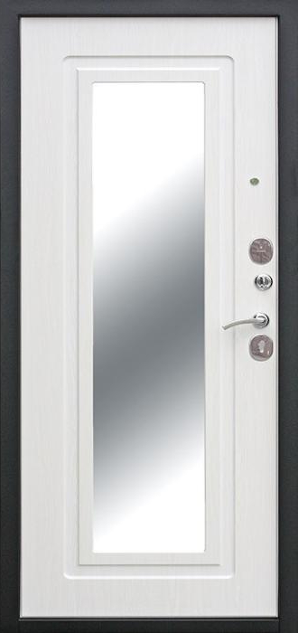 Надёжность металлической двери всегда в приоритете, но когда она получает дополнительное оснащение, результат становится особенно удобным. Входная дверь с зеркалом №78 удачно объединяет прочность конструкции и практичность деталей: массивный каркас из профильной трубы, лист стали толщиной 2 мм и усиленные рёбра жёсткости формируют крепкий защитный барьер, а зеркало на внутренней стороне делает её частью интерьера, экономя место и добавляя визуального простора. Снаружи используется молотковое напыление, устойчивое к царапинам и погодным перепадам, благодаря чему дверь подходит как для квартиры, так и для частного дома. Внутренняя отделка выполнена плитой МДФ, которая выглядит стильно и сохраняет аккуратность даже при активной эксплуатации. Два контура уплотнения помогают защитить помещение от сквозняков, а при необходимости конструкцию можно дополнить шумоизоляцией, современными замками и даже видеодомофоном. Входная дверь с зеркалом №78 от производителя: быстрое изготовление и монтаж в Бронницах, индивидуальные размеры, широкий выбор материалов и фурнитуры, официальная гарантия до 10 лет.