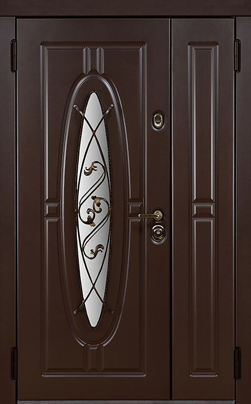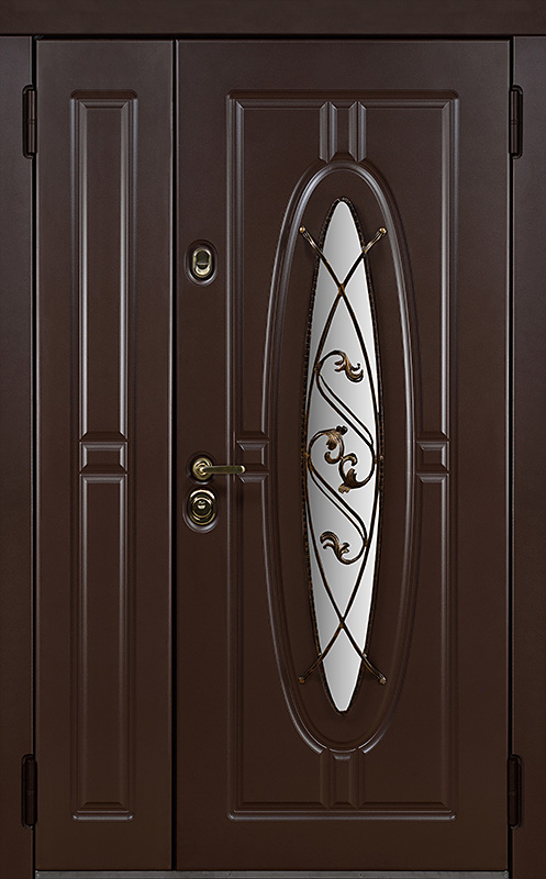 Двойная уличная дверь с овальным стеклом и художественной ковкой №14 — это уникальное сочетание функциональности и эстетики. Панели МДФ с ПВХ-покрытием, используемые как для внешней, так и для внутренней отделки, обладают высокой стойкостью к внешним воздействиям, сохраняя свой внешний вид на долгие годы. Внешний декор в виде художественной ковки придаёт двери особый шарм, подчеркивая её стиль и индивидуальность. Двойная уличная дверь с овальным стеклом и художественной ковкой №14 от производителя: быстрое изготовление и монтаж в Бронницах, индивидуальные размеры, широкий выбор материалов и фурнитуры, официальная гарантия до 10 лет.