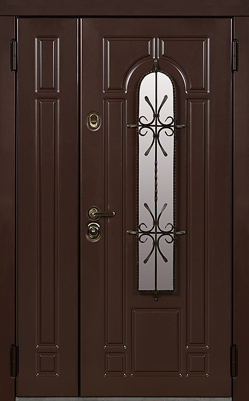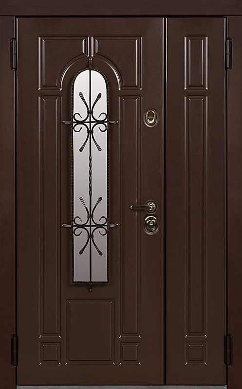 Эта металлическая двухстворчатая дверь с арочным стеклопакетом №15 представляет собой идеальный баланс между эстетикой и прочностью. Арочное стекло добавляет в её дизайн утончённость, а ковка в декоре придаёт изысканный, но в то же время крепкий и надёжный вид. Плита МДФ, используемая как для внешней, так и для внутренней отделки, не только сохраняет прекрасный внешний вид, но и устойчива к механическим повреждениям. Металлическая двухстворчатая дверь с арочным стеклопакетом №15 от производителя: быстрое изготовление и монтаж в Бронницах, индивидуальные размеры, широкий выбор материалов и фурнитуры, официальная гарантия до 10 лет.