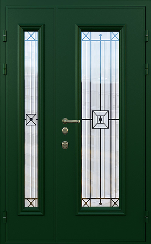 Зеленая полуторная дверь со стеклопакетом для частного дома №18 — это идеальный выбор для тех, кто хочет добавить в свой дом надежность и стиль. Элементы декора, такие как багет и ковка, придают двери элегантный вид, который идеально гармонирует с фасадом загородного дома. Панели МДФ с ПВХ-покрытием, использованные для внешней и внутренней отделки, обеспечивают высокую стойкость к механическим повреждениям и внешним воздействиям, сохраняя прекрасный внешний вид на долгое время. Зеленая полуторная дверь со стеклопакетом для частного дома №18 от производителя: быстрое изготовление и монтаж в Бронницах, индивидуальные размеры, широкий выбор материалов и фурнитуры, официальная гарантия до 10 лет.