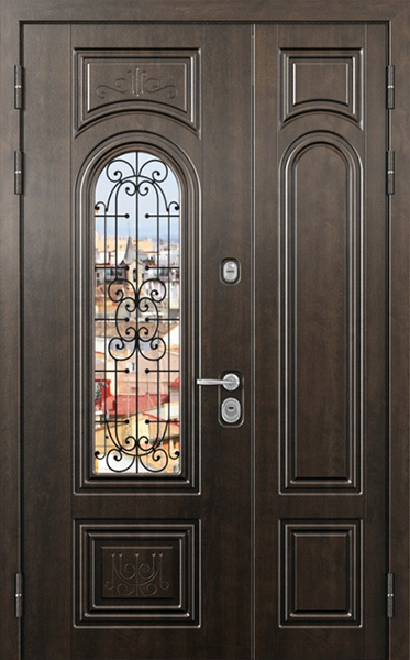 Двупольная стальная дверь со стеклопакетом и кованым узором №24 станет отличным выбором для тех, кто ценит не только безопасность, но и стиль. Внешняя и внутренняя отделка выполнены из МДФ, что придает двери элегантный и современный вид, а также обеспечивает высокую устойчивость к механическим повреждениям и износу. Стеклопакет и кованые элементы добавляют изысканности и уникальности, при этом сохраняя прочность конструкции. Двупольная стальная дверь со стеклопакетом и кованым узором №24 от производителя: быстрое изготовление и монтаж в Бронницах, индивидуальные размеры, широкий выбор материалов и фурнитуры, официальная гарантия до 10 лет.