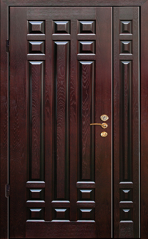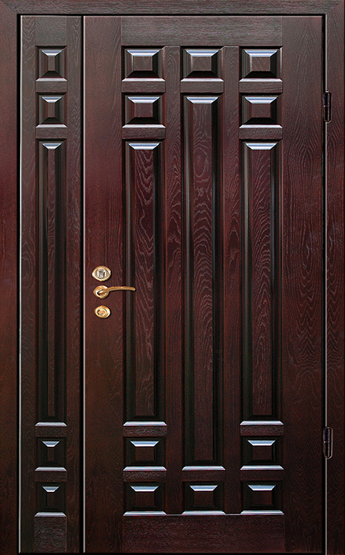 Эта двухстворчатая парадная дверь с объемной фрезеровкой №3 станет отличным акцентом в любом интерьере, добавив элегантности и солидности. Внешняя и внутренняя отделка из натурального дерева придает двери натуральный и стильный вид, который легко впишется как в классические, так и современные дизайны. Прочная конструкция двери с каркасом из профильной трубы 50х25 мм и листом металла толщиной 2 мм гарантирует долговечность и защиту. Ребра жесткости из профильных труб 40х25 мм повышают ее устойчивость к нагрузкам. Замки "Просам" и "Мосрентген" с тремя ригелями обеспечивают надежную защиту. Возможность выбора отделки и установки дополнительных элементов, таких как зеркало, стеклопакет или кованые детали, позволяет сделать дверь уникальной и подходящей под любые требования. Терморазрыв полотна и коробки способствует улучшению теплоизоляции. Вдобавок можно оснастить дверь современными замками и видеодомофоном для дополнительного комфорта и безопасности. Парадная двухстворчатая дверь с объемной фрезеровкой №3 от производителя: быстрое изготовление и монтаж в Бронницах, индивидуальные размеры, широкий выбор материалов и фурнитуры, официальная гарантия до 10 лет.