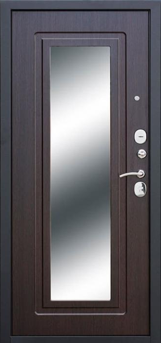 Дверь наружная с покрытием под дерево №3 — это стильное и надежное решение для вашего частного дома, квартиры или офиса. Конструкция двери включает прочный каркас из профильной трубы и металл толщиной 2 мм, что гарантирует долговечность и защиту от внешних воздействий. Внешняя и внутренняя отделка выполнены из плиты МДФ, что придает двери эстетичный вид и устойчивость к механическим повреждениям. Декор в виде зеркала подчеркивает её элегантность, а блокираторы и высококачественные замки (Просам и Мосрентген) обеспечивают высокий уровень безопасности. Дверь также оснащена двумя контурами уплотнения, что способствует хорошей изоляции. Возможность добавить стеклопакет, кованые элементы или видеодомофон делает этот продукт еще более универсальным и практичным для различных типов объектов. Дверь наружная с покрытием под дерево №3 от производителя: быстрое изготовление и монтаж в Бронницах, индивидуальные размеры, широкий выбор материалов и фурнитуры, официальная гарантия до 10 лет.