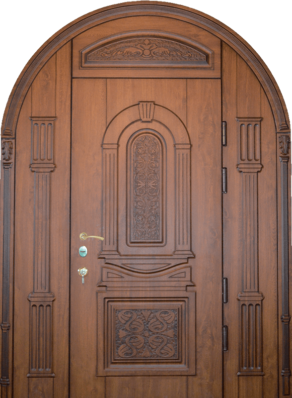 Эксклюзивная глянцевая дверь в частный дом с нестандартной фрезеровкой №24