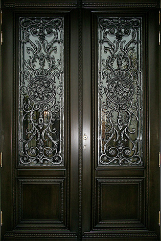 Эксклюзивная высокая входная дверь с железным отбойником №36