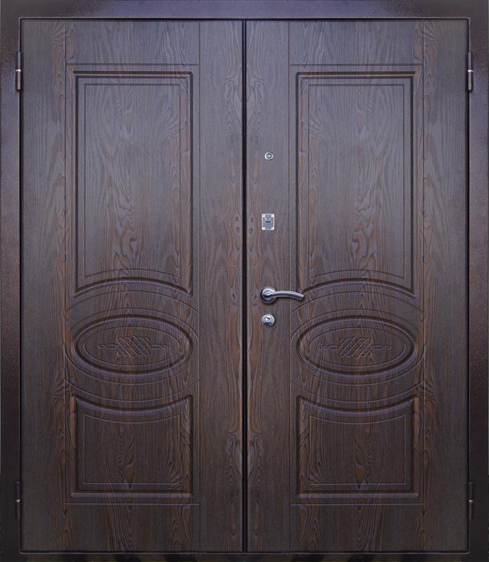 Морозостойкая дверь в широкий проем с глухим полотном стеклом и ковкой №30