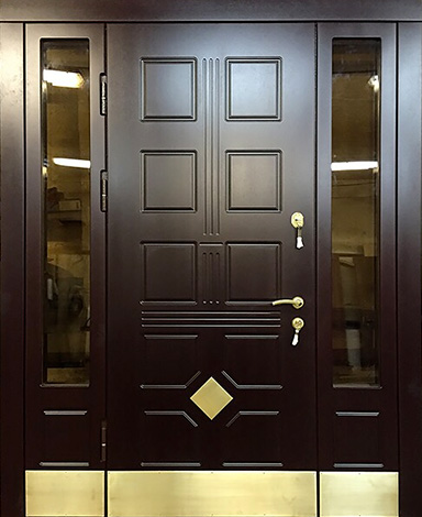 Натуральное дерево в отделке придаёт конструкции основательность и благородный внешний вид, а металлический каркас с листом стали толщиной 2 мм и системой ребер жёсткости обеспечивает надёжную защиту и долговечность. Входная дверь с остеклением №70 особенно востребована в частных домах и коттеджах, где важна не только безопасность, но и эстетика. Стеклянные элементы делают полотно визуально легче и наполняют прихожую естественным светом, при этом оставаясь частью прочной конструкции. Для комфорта предусмотрены два контура уплотнения, а терморазрыв в коробке и полотне защищает от промерзания и сохраняет тепло даже в сильные морозы. Итальянские замки Cisa цилиндрового и сувальдного типа дополняют высокий уровень безопасности. Возможность добавить кованые элементы, зеркало или стеклопакет позволяет адаптировать модель под архитектуру дома, подчёркивая индивидуальность и вкус владельцев. Входная дверь с остеклением №70 от производителя: быстрое изготовление и монтаж в Бронницах, индивидуальные размеры, широкий выбор материалов и фурнитуры, официальная гарантия до 10 лет.